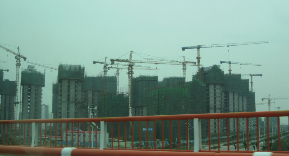 Cranes, cranes galore. This is what you first see at when you drive in to Tianjin... or really any major Chinese city. Image by Nick Chu.